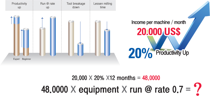 - Reduction of milling time by optimized terms & upward Run@rate by continuous ATC use