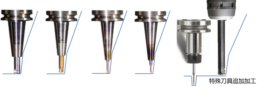 - AICAM根据热缩刀柄的尺寸来控制加工区域,所以务必使用AICAM专用规格的15个热缩刀柄