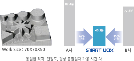 | 생산량 | 단기 집중 생산 : 기존 NC 2~3대가 많음 장기 다량 생산 : 주야 휴일 없이 빠른 SMART UAX 많음 | |